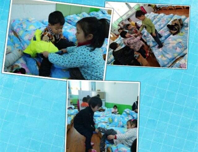 通过一段时间的尝试和学习,大多数孩子已经会自己脱衣服、叠衣服,现在也开始慢慢尝试脱裤子和穿裤子。看,有的小朋友自己脱好了衣服还会帮助别的小朋友脱衣服和裤子。