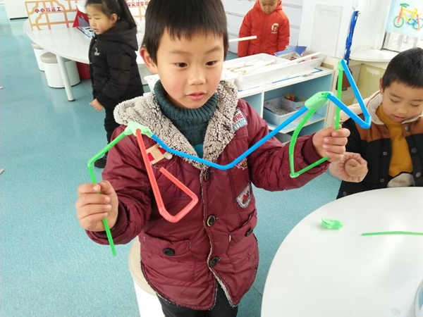 前一阵子对于建构游戏的研讨和改进在郑陆中心幼儿园开展的如火如荼,小朋友们从身边发现各种各样的材料来进行建构游戏。在这期间,很多细心的小朋友们发现吸管可以用来相互拼接,一些小朋友甚至还向大家展示了吸管拼接的作品,这引起了小朋友们极大的兴趣。纷纷在教室的区域里进行尝试。