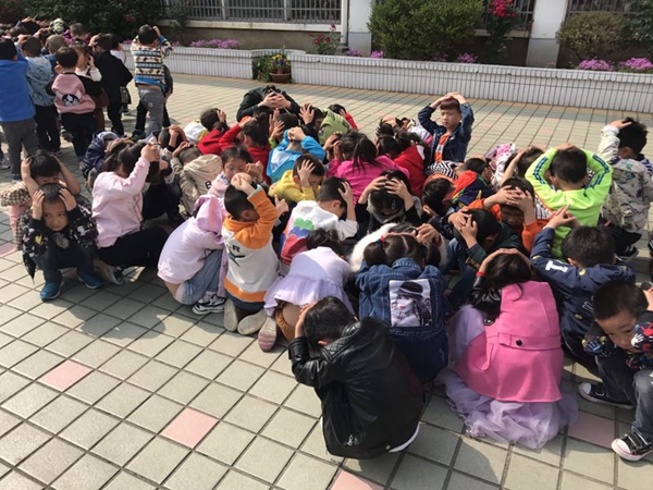 幼儿园是人群相对密集,事故易发地点,为了培养幼儿逃生自救技能,确保幼儿生命安全,2018年5月8日下午,我园举行了防震演练。在演练期间,校园铃声长鸣,孩子们在老师的指挥下,快速有序地向操场疏散。本次活动全园师生参加,小朋友们从教室撤离到校园操场,整个演练过程既紧张、激烈,又有条不紊。小朋友们都很棒,知道了在危险中迅速逃生的办法。