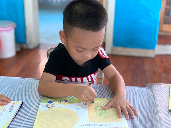 在这个游戏中,我引导幼儿尝试用油画棒进行点的练习,观察到幼儿喜欢吃饼干,饼干也是幼儿生活中常见的东西,是他们比较感兴趣的,所以选择芝麻饼干,通过幼儿给饼干添加芝麻来练习“点”的绘画。孩子们在活动中兴趣十足,也进一步锻炼了动手的能力。