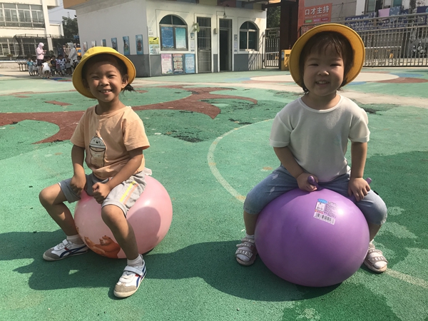 孩子们骑在羊角球上你追我赶,兴趣十足。“以后我骑着羊角球上幼儿园就行了,不用爸爸的车接送了,这多省能源呀……”孩子的表达让老师忍俊不禁。