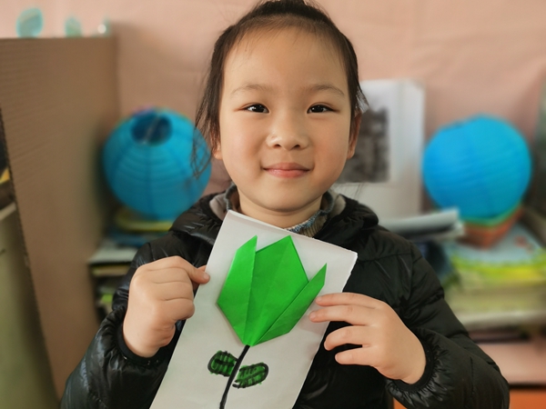 孩子们知道万物复苏的春天要来了,也想为春天增添一抹色彩, 3月25日我们开始了制作“美丽郁金香”的手工活动。活动前,老师准备了五颜六色的纸,胶水,水彩笔。孩子们都跃跃欲试,我们跟着电视机上的折郁金香的示意图,按步骤一步一步的折,孩子们在折纸的过程中遇到了困难,会向其他小朋友和老师请教,同伴之间能够互相帮助,互相合作。等小朋友们的郁金香都折好了,我们将郁金香的一年贴在白纸上,并为它画上茎和叶,有些孩子还会在花朵上画上自己喜欢的图案,最后和自己制作的郁金香来一张漂亮的合影吧!