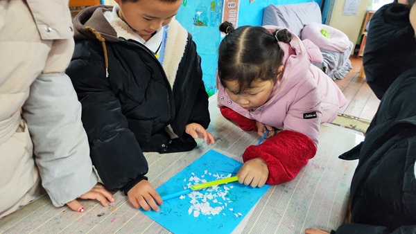 我们准备了吸管、纸屑等材料,孩子们通过用吸管摩擦自己的头发,用产生的静电吸附纸屑,好玩极了!我们一起在有趣的游戏中还一起了解了奇妙的生活现象。