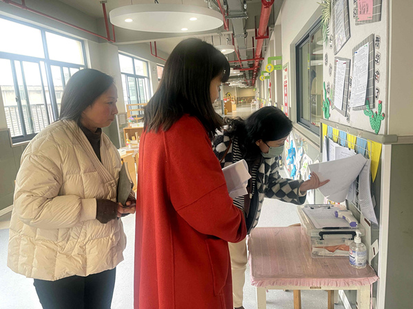 戴局重点了解了幼儿园在疫情防控、师德师风、舆情防控、校园安全等方面的情况。陆建芬园长与中层人员向戴局汇报了寒假工作和新学期园所工作的总体思路及开学创意,重点介绍了园所的队伍建设、课程改革、内涵发展和幼儿保健工作,并实地查看了幼儿班级、食堂、门卫、消防等设施设备。