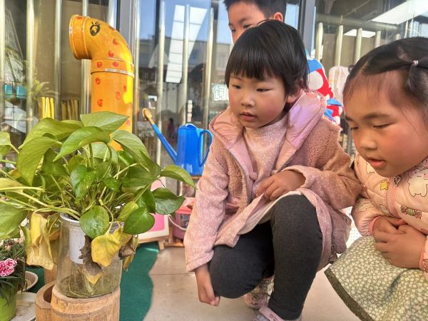 3月10日中午,老师组织小朋友来到植物角,观察植物,遵从科学教育目标出发,在老师们的引导下,幼儿积极主动地仔细观察植物,亲近自然、爱护植物、发现周围环境中有趣的事物,既能加强幼儿关注自然,爱护自然地意识,又能更好的激发幼儿认识的兴趣和探索欲望,它弥补了集体活动中观察、探究不足的缺憾,也提供了孩子们的感性经验,在摸、看、说、养等过程中为孩子的科学探索提供了良好的机会。